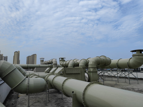 實驗性室有機廢氣 → 滲透性炭活性炭管道過濾器 → 引軸流式風機 → 減排